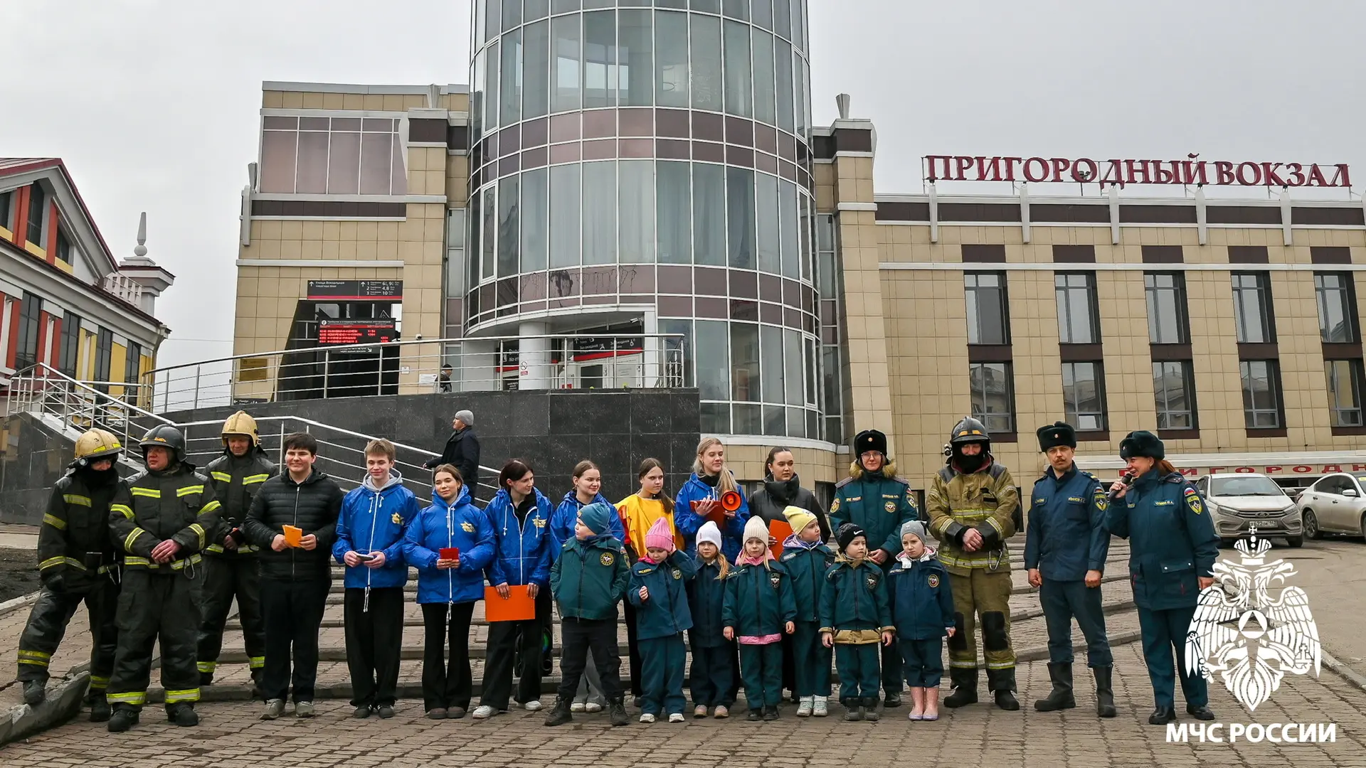 В преддверии особого противопожарного режима (с 15 апреля по 1 июня) на пригородном железнодорожном вокзале прошла яркая профилактическая акция.