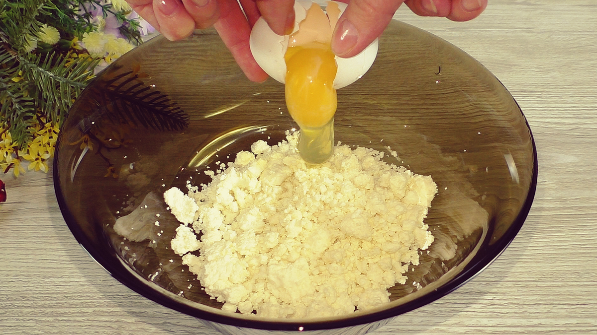 Для начала, в миске нужно объединить творог, щепотку соли и яйцо. Затем добавляется сметана и сахар — все тщательно перемешивается. Постепенно вводится мука, а тесто замешивается руками так, чтобы оно немного липло к рукам и не было слишком тугим. После этого тесто упаковивается в пакет и оставляется на 10-15 минут в холодильнике для отдыха.