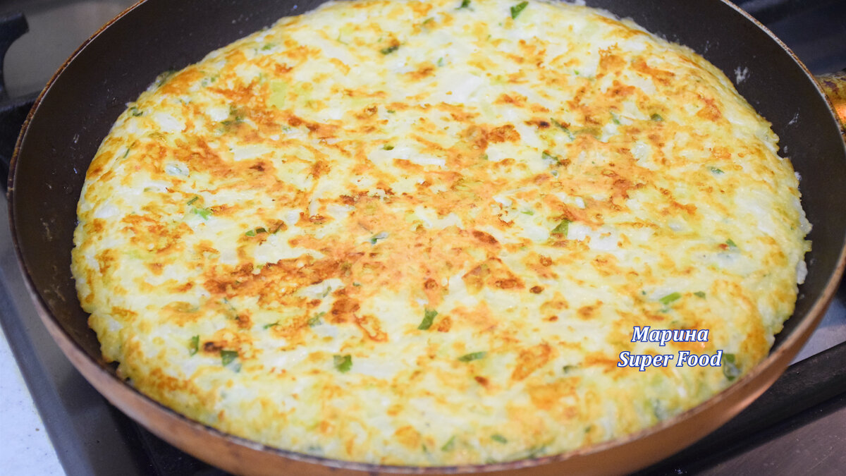 Жарьте под крышкой на среднем огне до золотистой корочки (примерно 10 минут). Затем аккуратно переверните и продолжайте готовить еще 10 минут.
