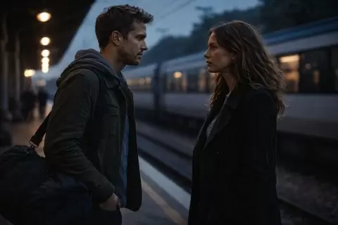 Последний сигнал поезда пронзил воздух, пока двери вагона закрывались. Антон оставил свою сумку на земле и посмотрел в глаза Вере. В этот миг они оба осознали: чувство вины и страх перед будущим оставались с ними.