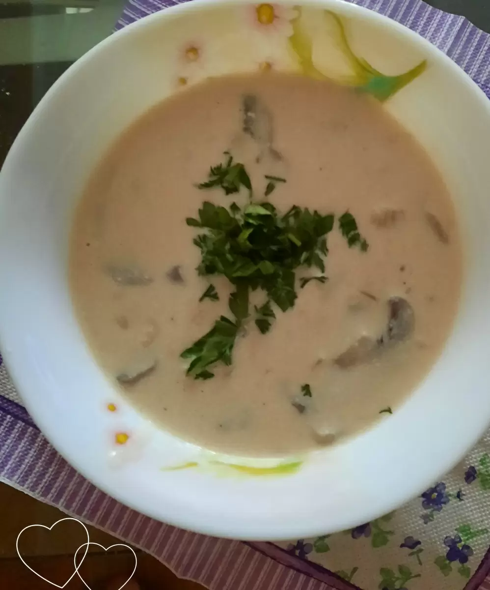 После этого влейте 200 мл молока, постепенно подогревая смесь. Важно хорошо размешивать, чтобы избежать комочков. В итоге добавьте обжаренные грибы со сливками и аккуратно разбавьте суп горячей водой до желаемой консистенции. Не забудьте попробовать суп на соль и в случае необходимости приправьте еще раз.