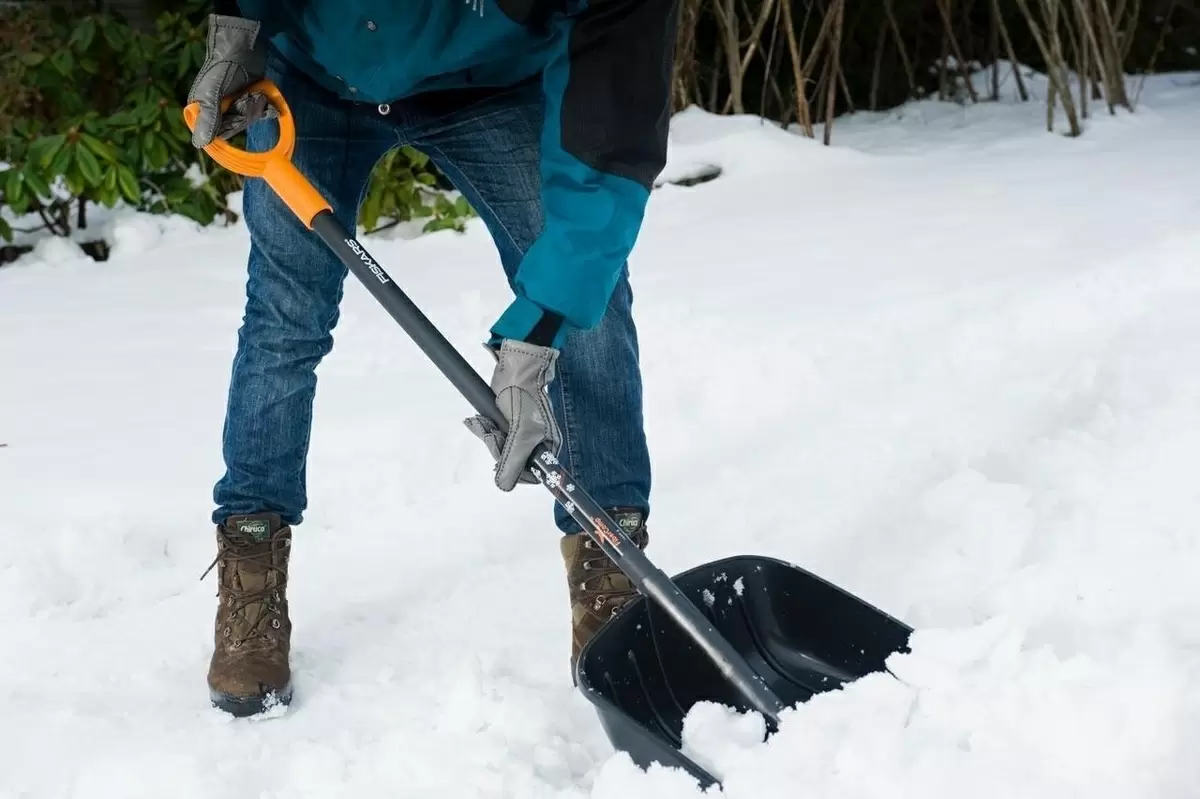 - Правильная техника: Вместо того чтобы поднимать снег, стоит использовать его как бульдозер. Подкладывая лопату под тело, можно толкать снег вперед с минимальными усилиями.