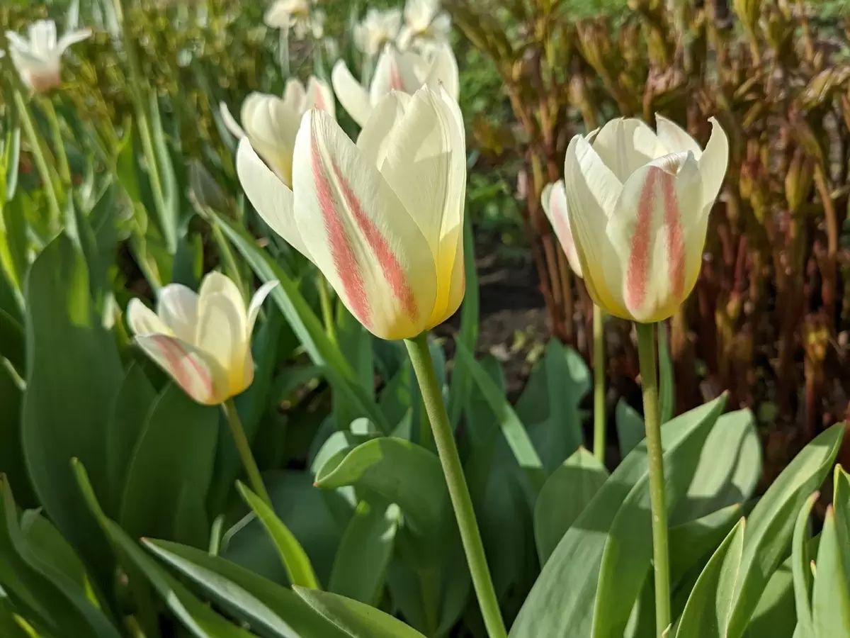 - Тюльпан Фостера, сорт Purissima — этот сорт стал парадным акцентом, высаженным в большом количестве для создания яркого цветочного бордюра.
