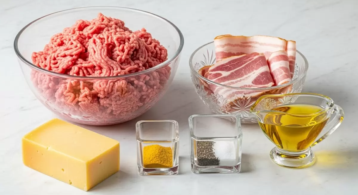 - Копченый бекон (50 г) — благодаря ему котлеты приобретают неповторимый аромат.