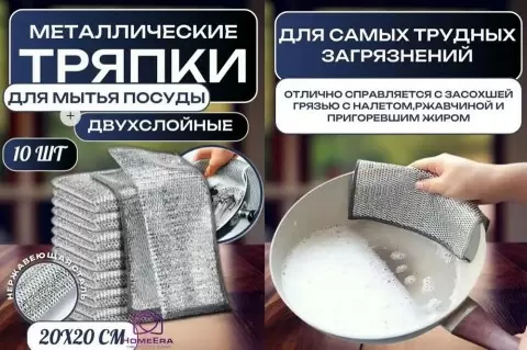 - Медицинская стальная тряпка: Сделана из высококачественной нержавеющей стали, эта тряпка не только долговечна, но и эффективно справляется с загрязнениями, не оставляя следов на посуде.