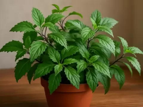 Данная культура относится к семейству астровых и может в домашних условиях достигать 25 см в высоту. Однако в благоприятной среде её стебли способны вытягиваться до метра. Листья, насыщенные цветом и с легким зубчатым краем, радуют глаз и добавляют свежесть кулинарным изыскам. С возрастом молодые ветви меняют окраску — сначала зеленые, а затем с сиреневыми оттенками.