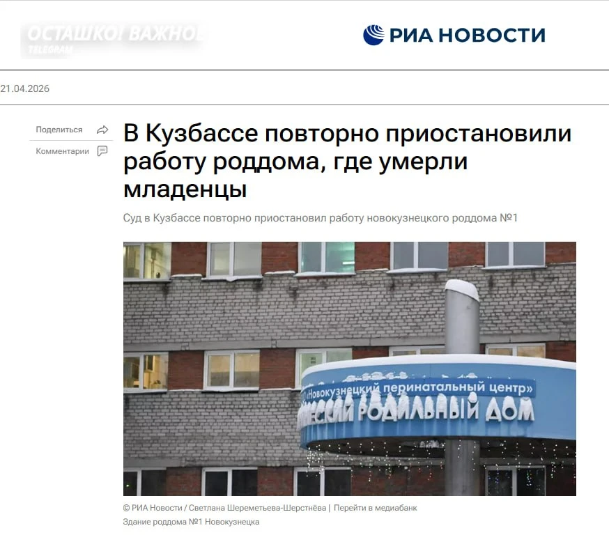 В Новокузнецке суд повторно на 90 суток остановил работу акушерского стационара №1 ГАУЗ «Новокузнецкая городская клиническая больница №1 им. Г. П. Курбатова», где в январе умерли 9 младенцев.