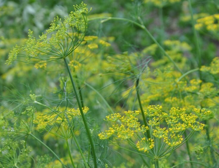 Укроп – это не только популярная зелень для салатов и супов, но и ещё одна звезда на огороде. Высевая его густо, можно заглушить рост многих сорняков. Он также выполняет роль естественного репеллента против вредителей: сажая его рядом с томатами, перцами или огурцами, можно отпугнуть тлю и других опасных насекомых.
