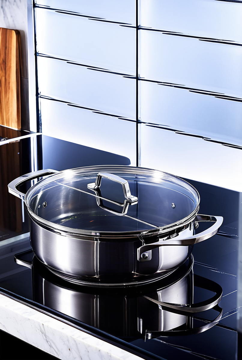 - Стеклянная основа: Из закаленного жаропрочного стекла, которая позволяет наблюдать за приготовлением блюд без потери аромата и влаги.